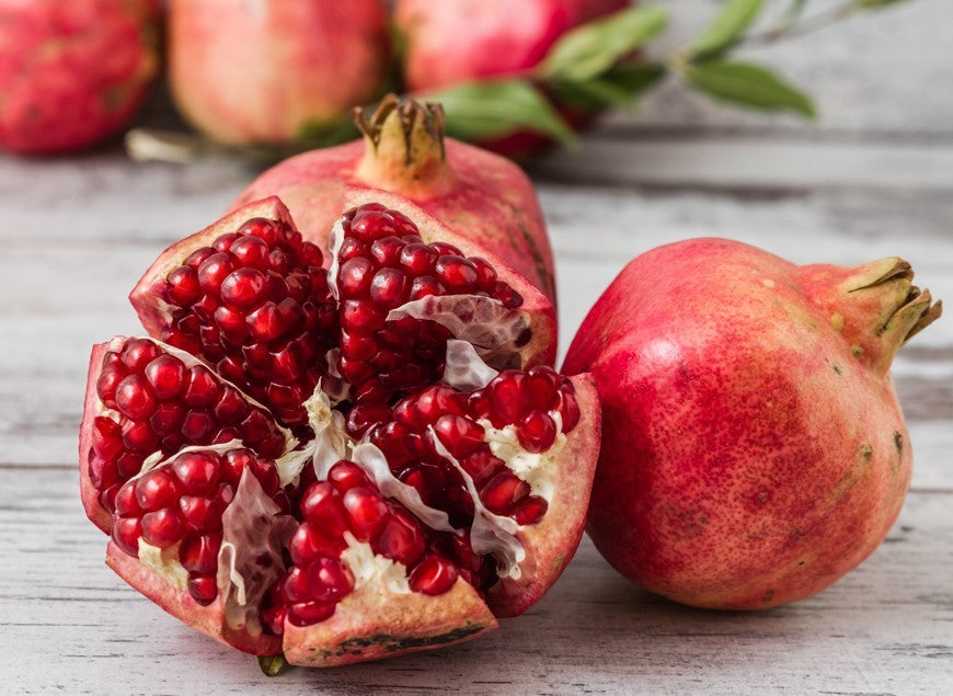 Der Granatapfel vereint zwei einzigartige Substanzen in seinen Kernen, die einen wesentlichen Teil seiner gesundheitsfördernden Wirkung ausmachen: Punicinsäureund Punicalagin. Ersteres ist eine mehrfach ungesättigte Fettsäure, die im Granatapfelkernöl vorkommt und reich an bioaktiven Stoffen ist, welche die Körperzellen vor Schädigungen schützen.